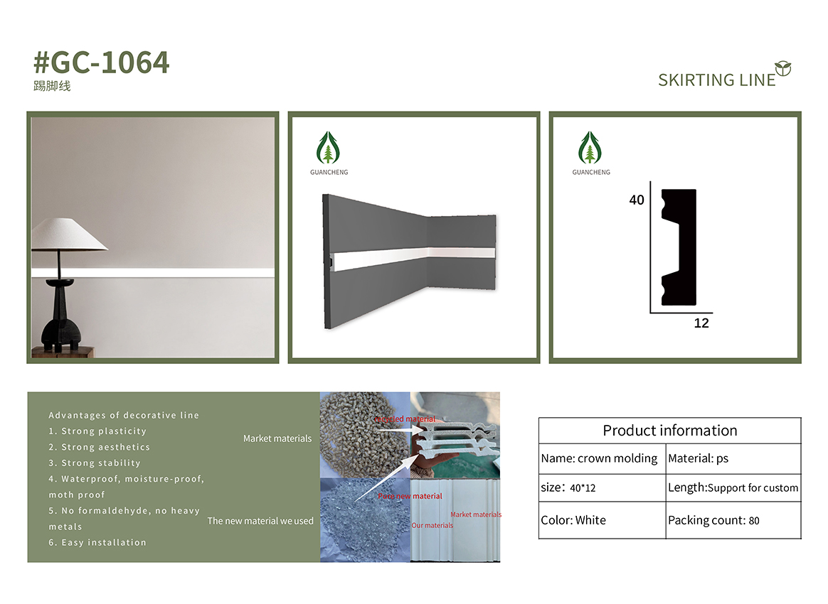 14*1.3cm quality Interior Decoration Skirting PS Moulding Eco-Friendly Skirting Board JC06-140M